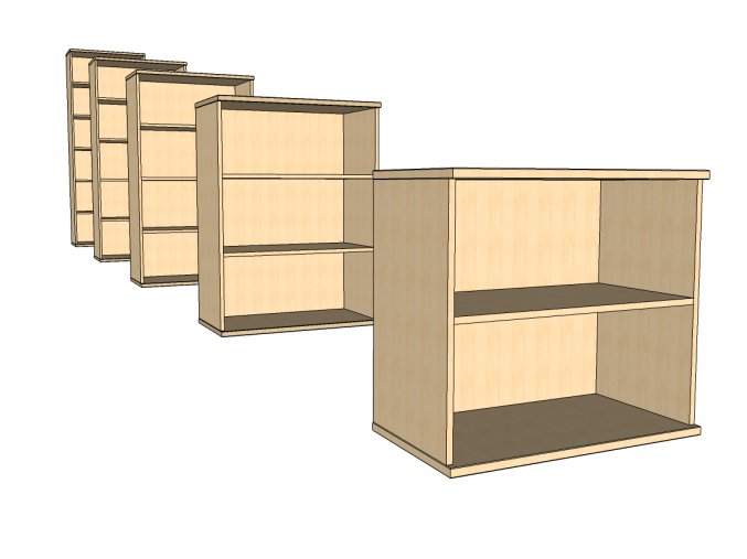 Policová skříň na soklu v různých výškach, určená pro samostatné stání i do sestav.